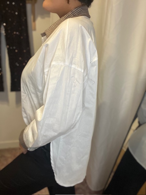 Chemise blanche en coton avec détail col et manches à carreaux . Taille unique