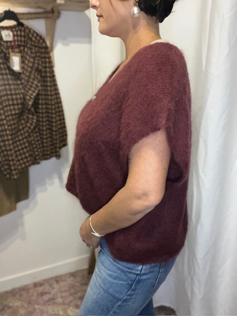 Gilet sans manches 40% de Mohair . Détail de fermeture avec boutons .