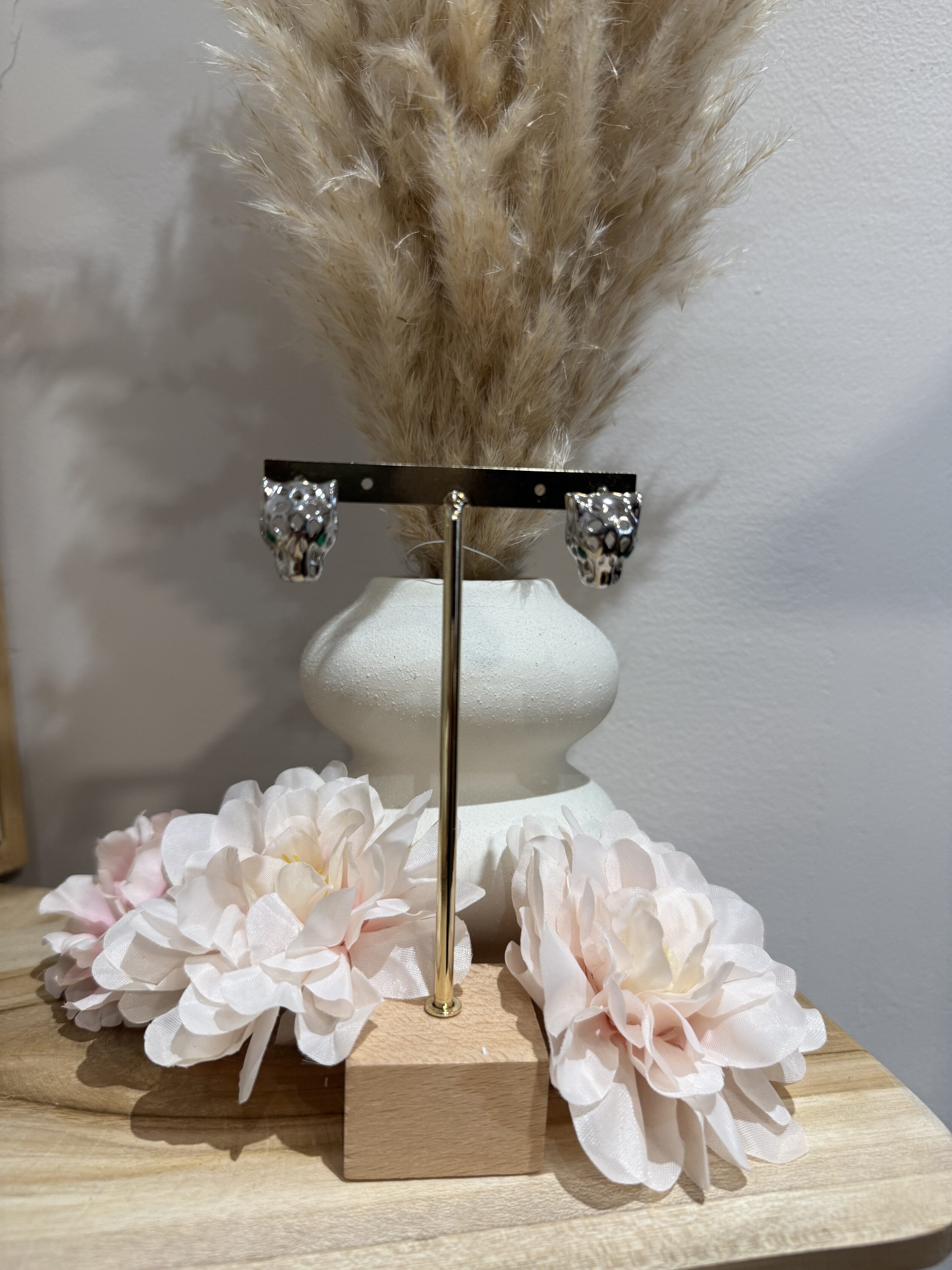 Puces d’oreille en acier inoxydable argent avec tête de jaguar .
