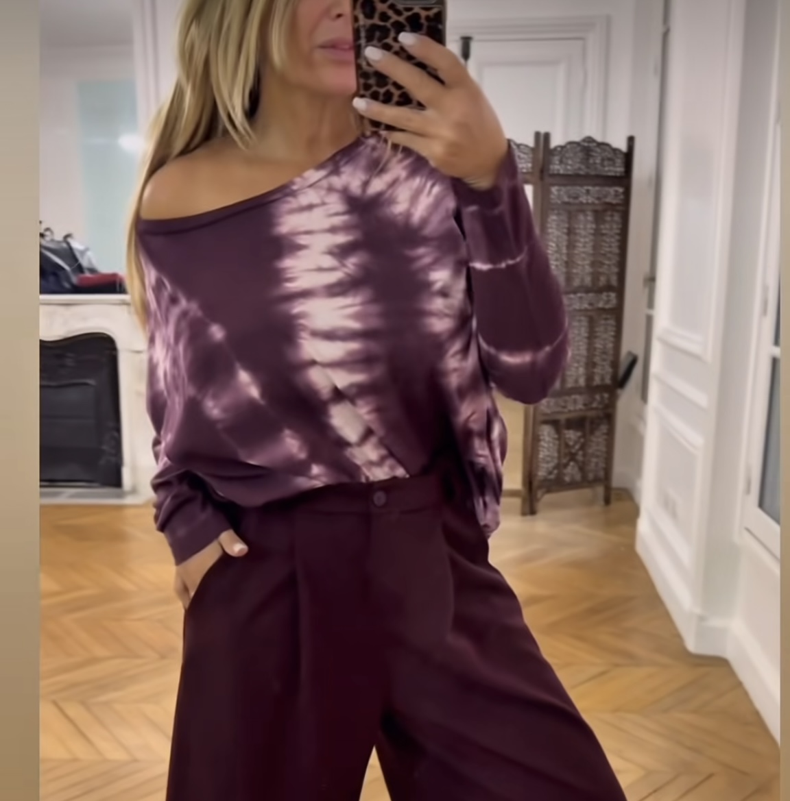Tee shirt manches longues de la marque Johanna Paris. Détails tye and die colorés dans les tons prune . Taille unique